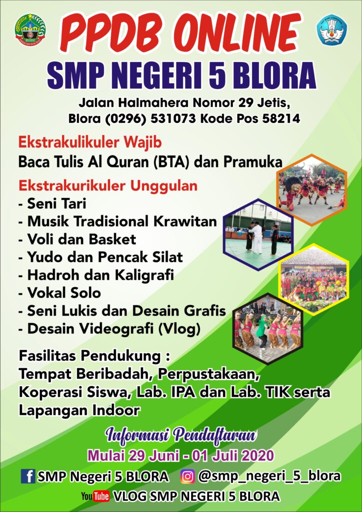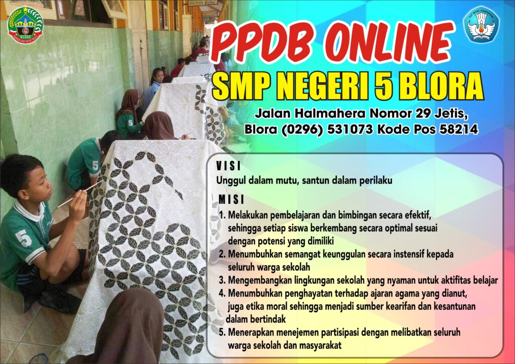 Pelaksanaan PPDB Online Kabupaten Blora Tahun 2020 egera dibuka. Bagi calon peserta didik harus memahamai bahwa kegiatan PPDB ini memiliki dasar berkeadilan, akuntabel, transparansi, objektif, dan nondiskriminatif. Sehingga, orang tua peserta didik dapat menyekolahkan putra dan putri mereka ke sekolah negeri. Sasalah satu sekolah negeri yang ada di Kabupaten Blora adalah SMP Negeri 5 Blora.