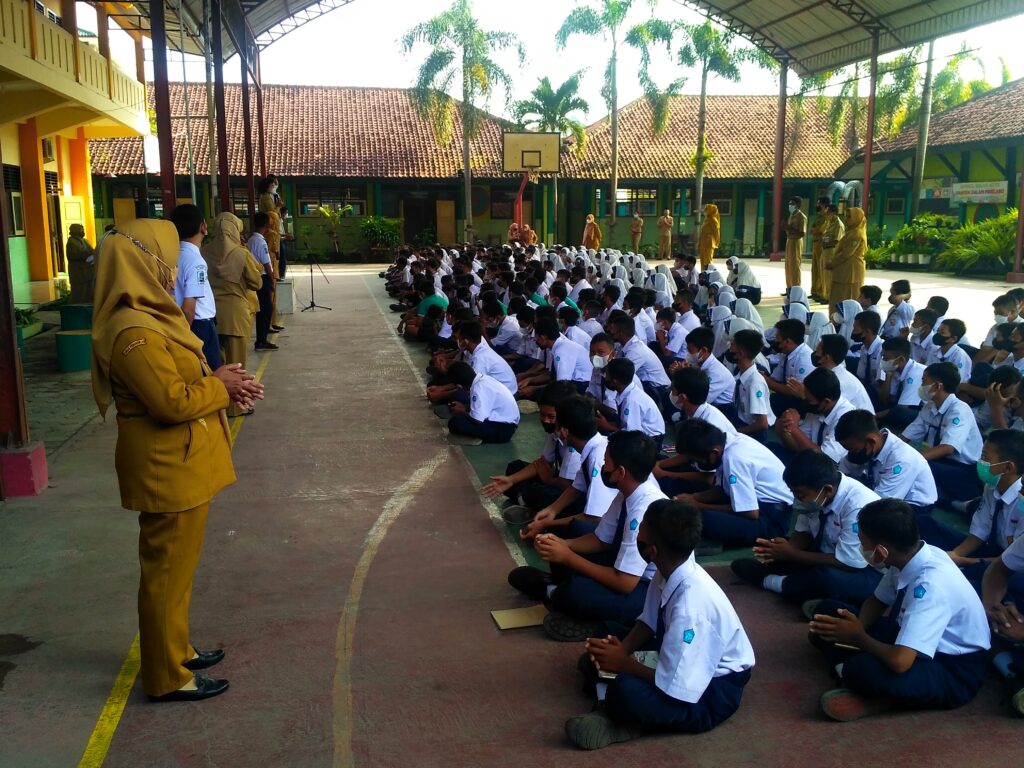 Perkenalan dengan kepala sekolah baru Ibu Tri Handayani, M.Pd. Serta menumbuhkan pembiasaan santun dalam lingkungan sekolah, dipandu oleh Waka Kesiswaan, Humas, Wali kelas, dan semua Bapak ibu guru dan karyawan SMPN 5 Blora.